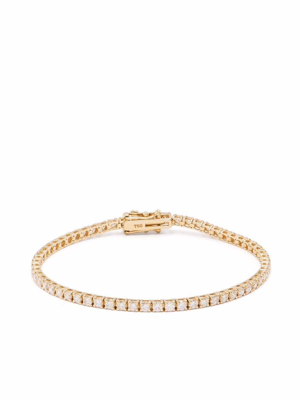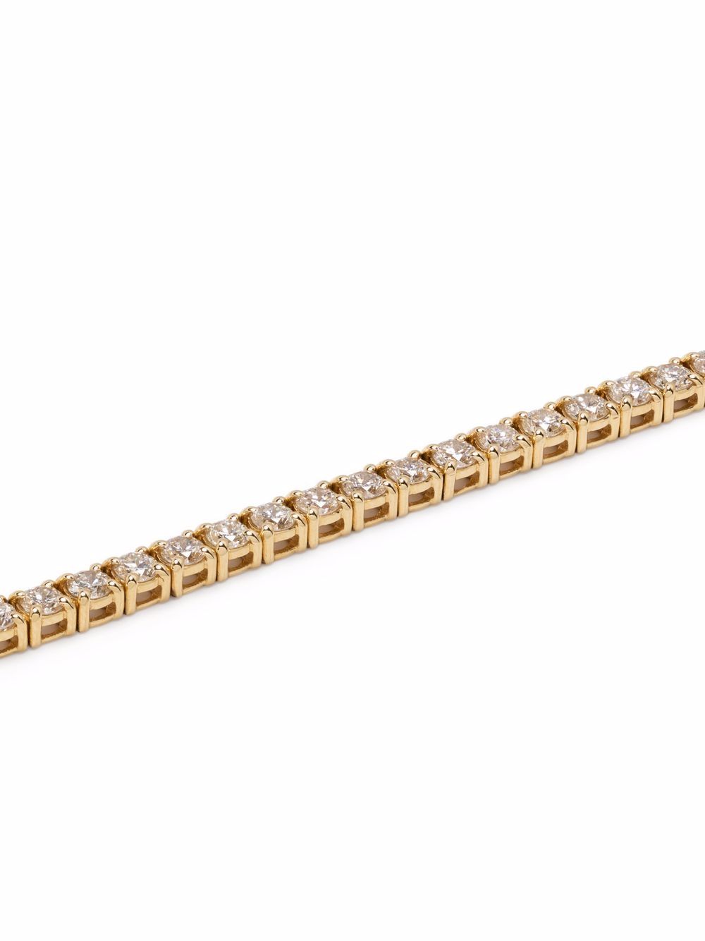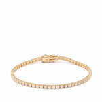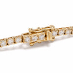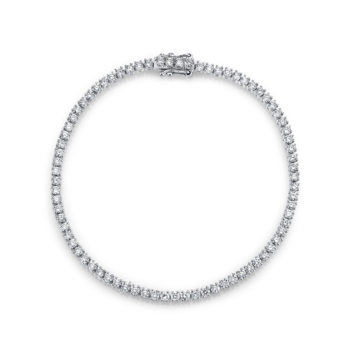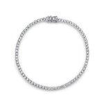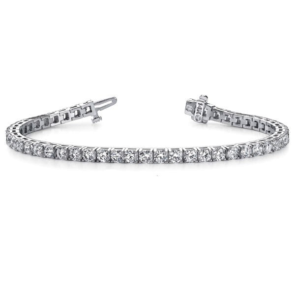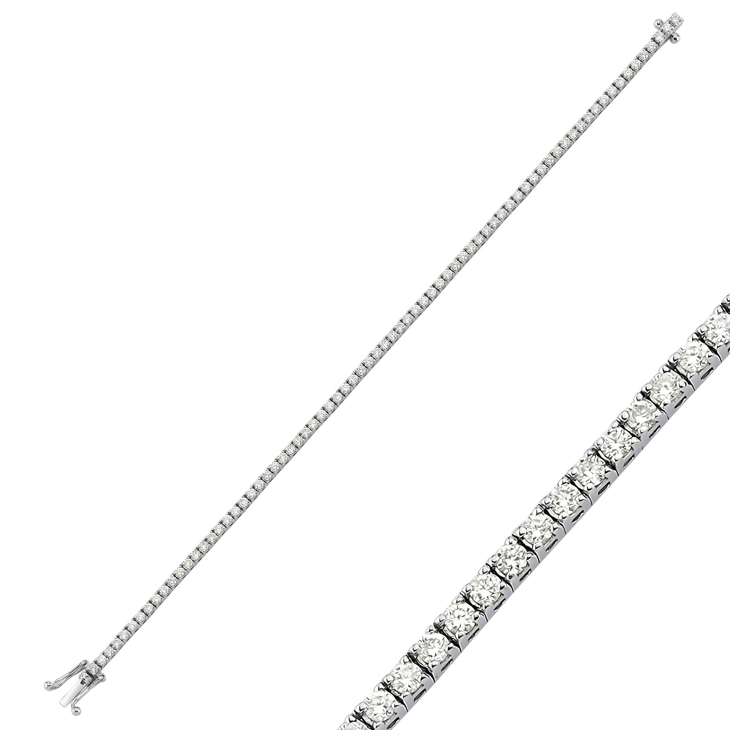 This14k white gold diamond tennis bracelet is 2mm wide and contains F-G color, VS2-SI1 clarity round brilliant diamonds totaling 2.35ctw.