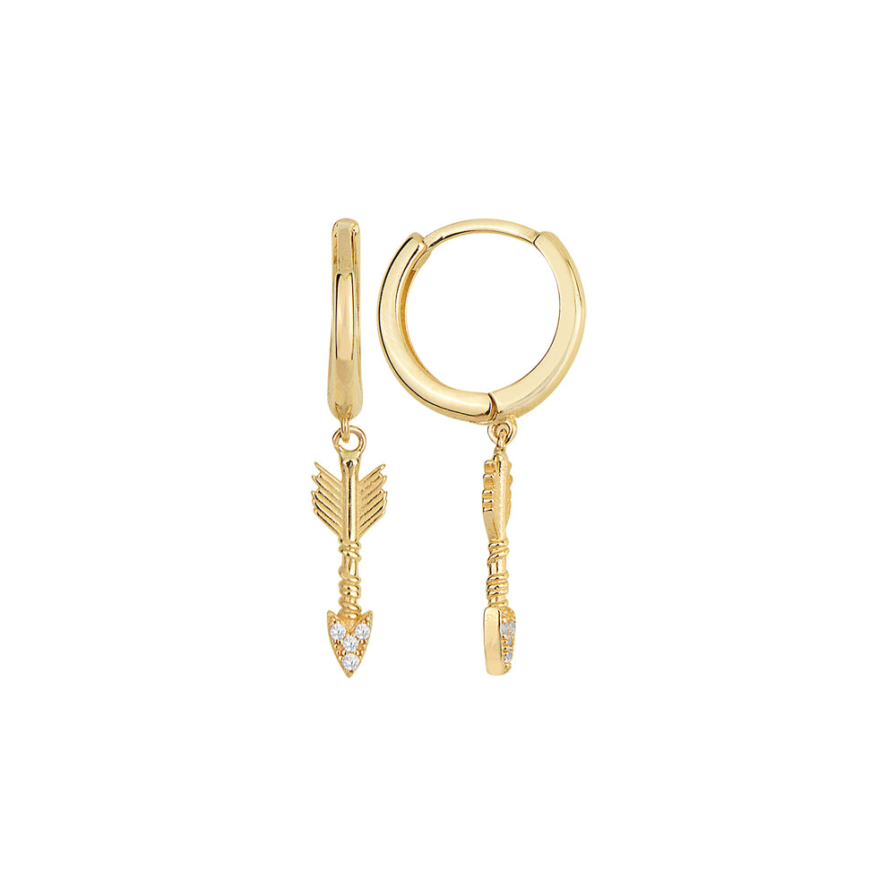 With feathers and arrows opposing femininity, each piece symbolizes a soul that won’t give up, despite all odds.  Each earring in this powerful collection is crafted with 14k yellow gold and shimmery diamonds.