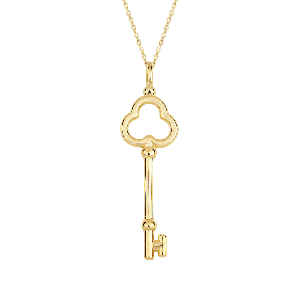 14k yellow gold key necklace. Adjustable chain is 18" long and can be worn at 16" or 18" length.