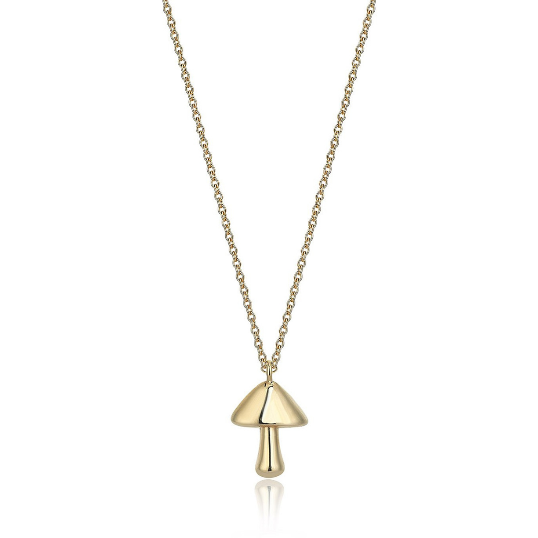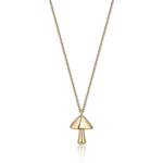 Mushroom pendant necklace in solid 14ct yellow gold. Fine 14k gold cable chain is 16-18" in length.