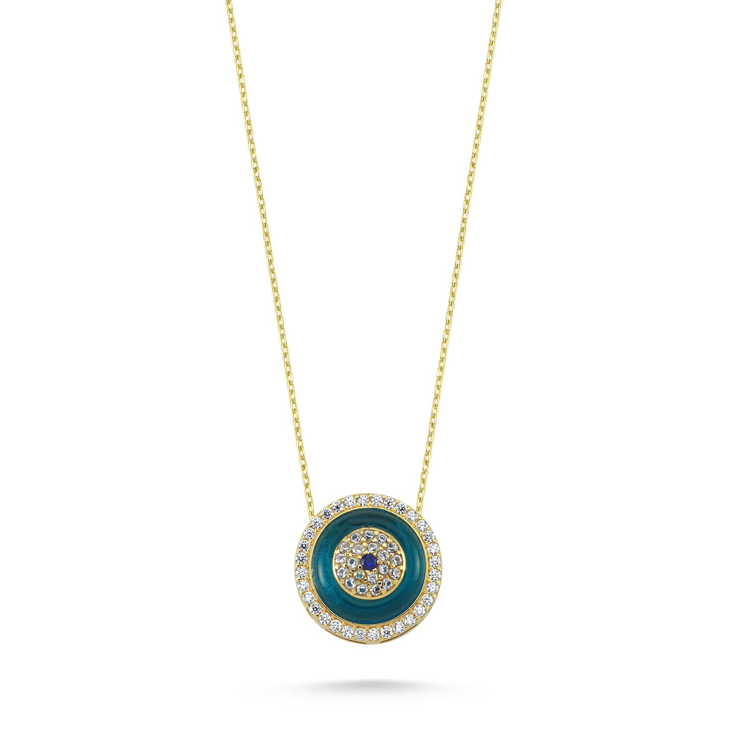 14k Gold and Pavé Diamond Bezel Evil Eye Necklace.
