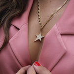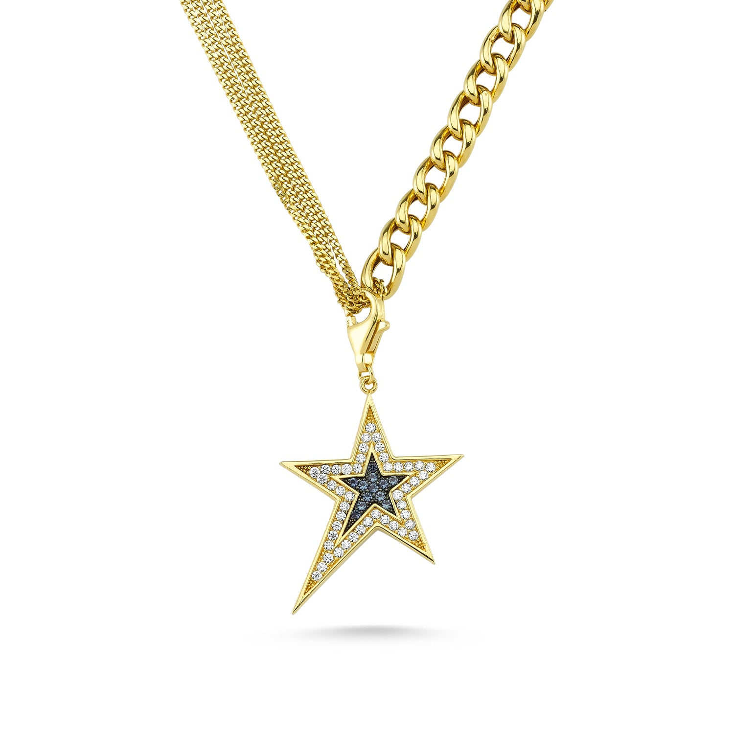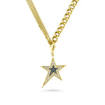 14k Yellow Gold Star Medallion with Sapphire center and Pavé Diamond border. Double chain is available in 18" or 20" lengths.