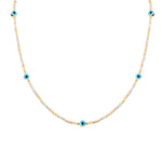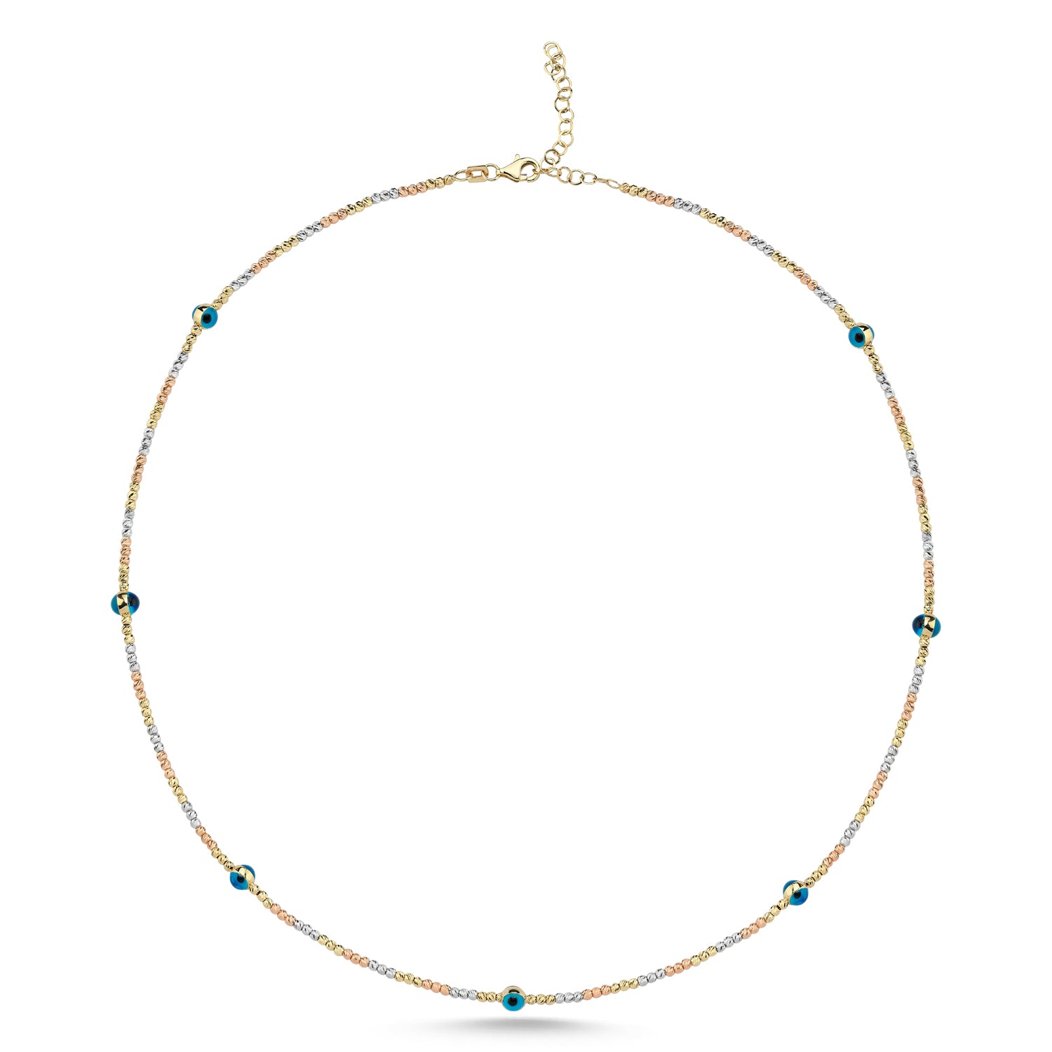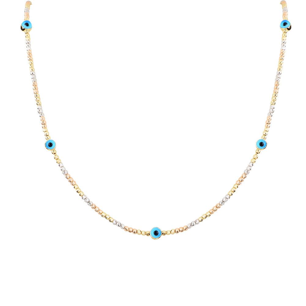 14K yellow, white and rose gold mix ball bold evil eye choker necklace.