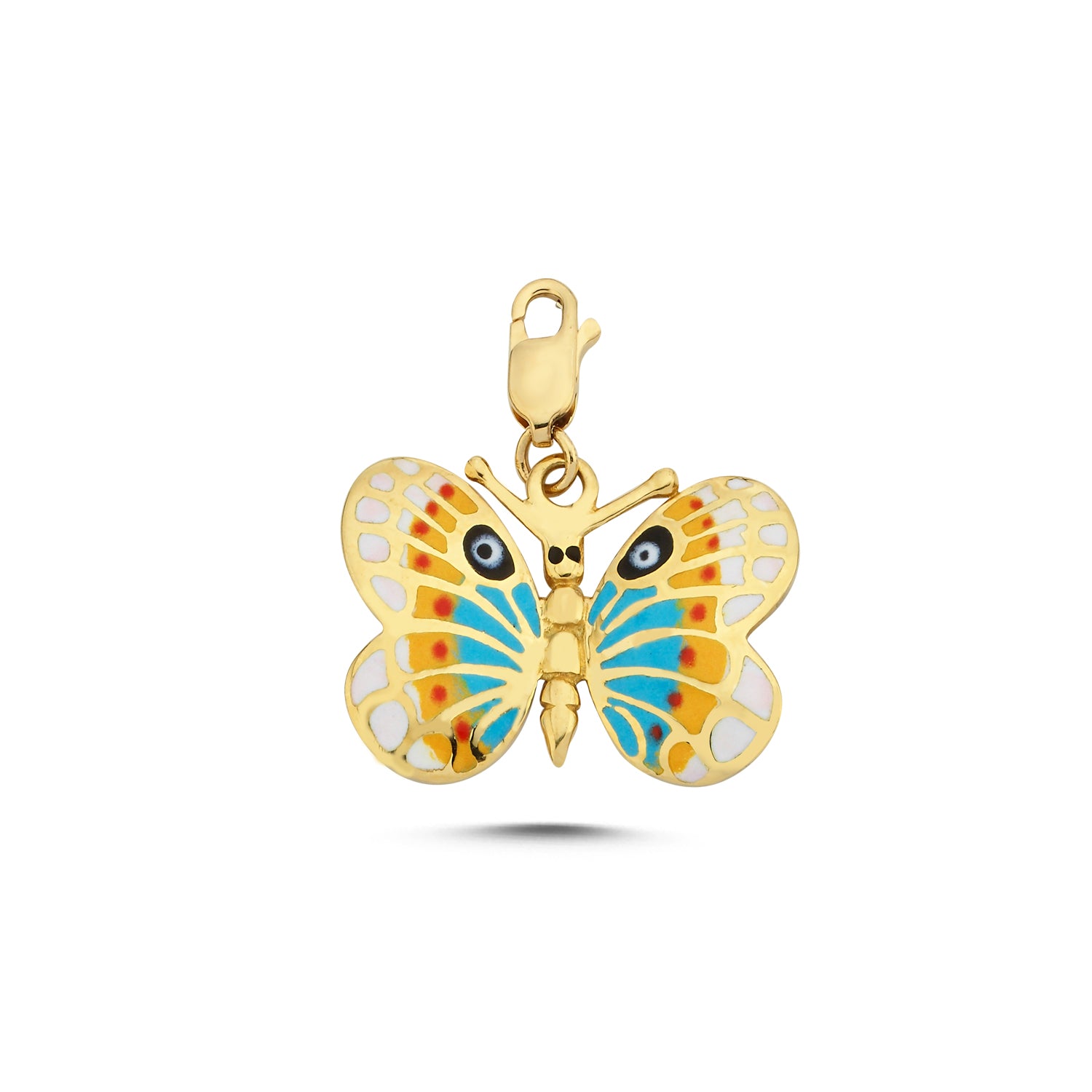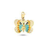 14K yellow gold white and yellow enamel with evil eye detail butterfly pendant charm.