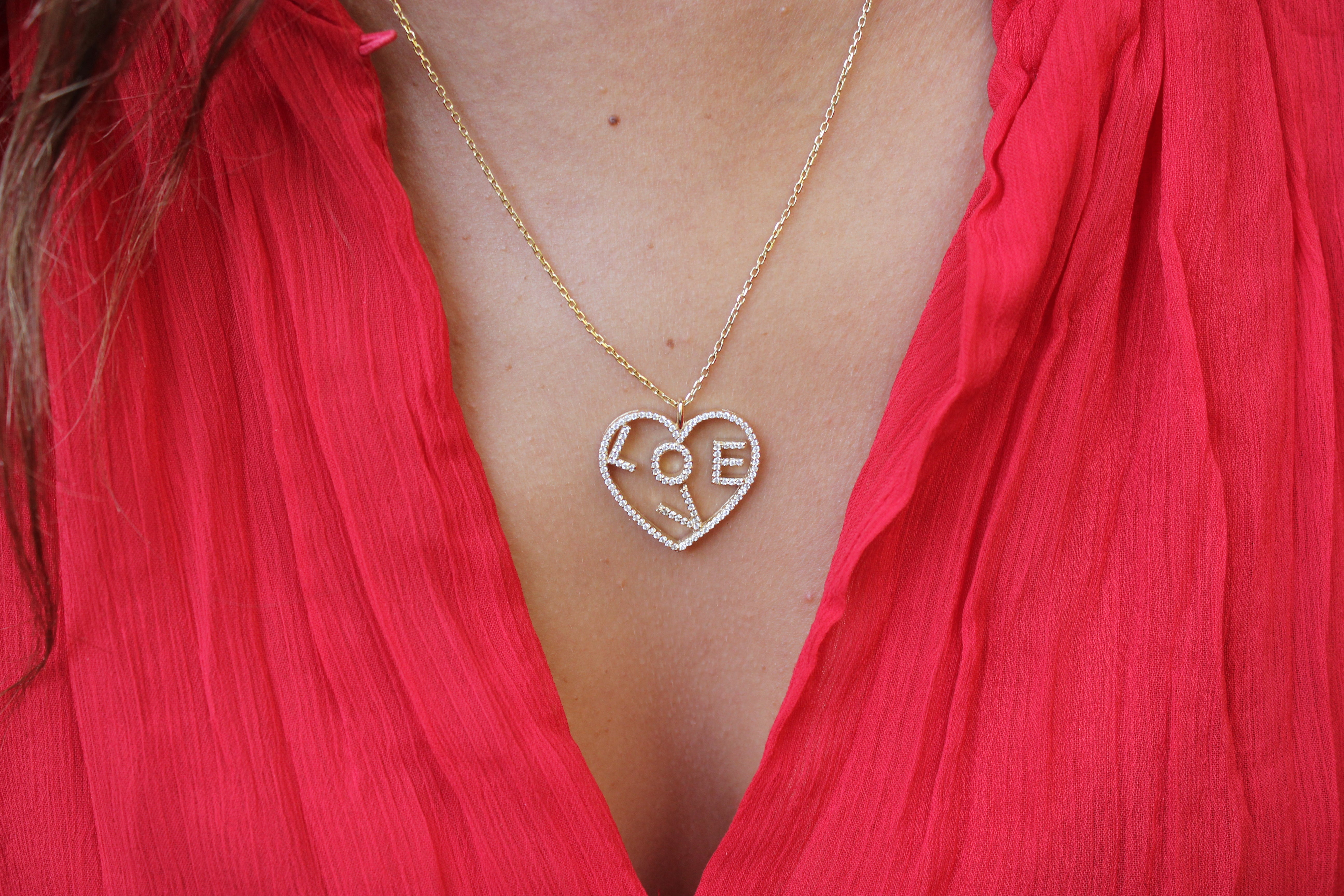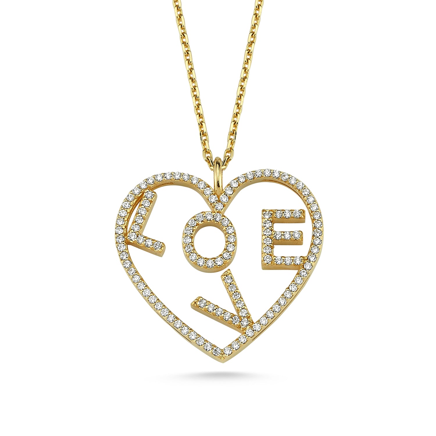 14k gold Initial Love Pendant pavé-set diamonds along the border or with gem stones