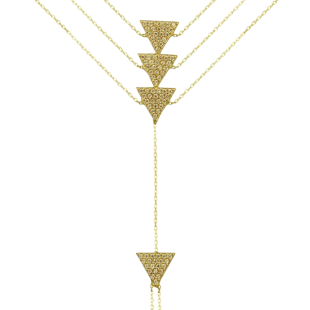 14k gold triangle pave finger bracelet.